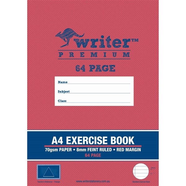 WRITER PREMIUM EXERCISE BOOK FEINT RULED 8MM 70GSM 64 PAGE A4 TRIANGLE