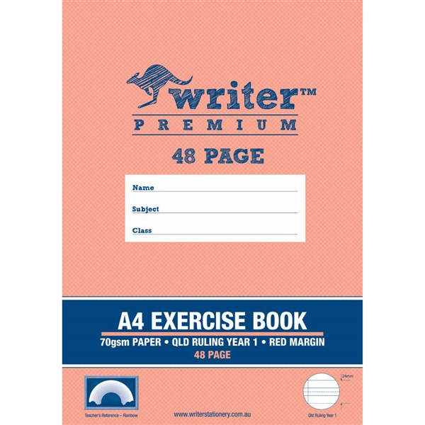 WRITER PREMIUM EXERCISE BOOK QLD RULING YEAR 1 70GSM 48 PAGE A4 RAINBOW