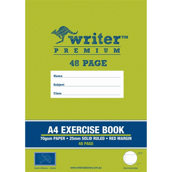 WRITER PREMIUM EXERCISE BOOK RULED 25MM 70GSM 48 PAGE A4 UMBRELLA